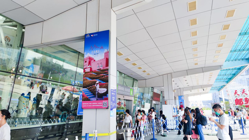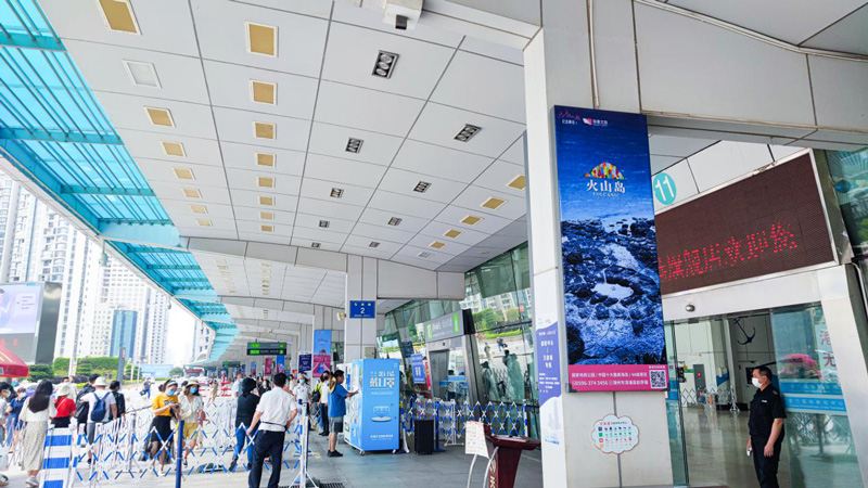 24面大幅燈箱廣告在郵輪中心出發(fā)層的廊道面向全國各地游客進(jìn)行多角度多方位的展示,通過不同的火山島的廣告畫面——藍(lán)綠色的大海、金色細(xì)軟的沙灘、暗黑色的礁石、臨海而立的粉色城堡、半球形的可愛童趣泡泡屋。讓全國游客可以領(lǐng)略火山島的獨(dú)特的濱海火山風(fēng)景線。