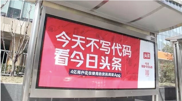 那么,兼具社交屬性與戶外廣告自身特性的戶外廣告2.0版,究竟如何用場景化營銷手段,調(diào)動一眾逗逼路人一塊玩耍,發(fā)起由線下至線上的一股股參與熱潮?不妨可以看看今日頭條、紅牛、一點資訊以及百度語音搜索這四家最近的戶外廣告案例。
